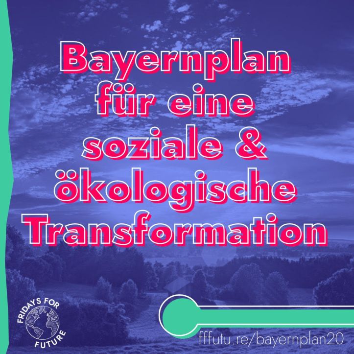 BUND Bayern, Friday for Future die Jesuitenmission und das Landeskomitee der Katholiken in Bayern haben am 25.06.2020 eine Aktion „Bayernplan für eine soziale und ökologische Transformation des Freistaates Bayern organisiert.