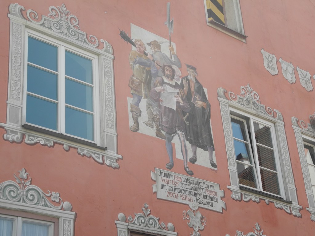 Die Kramerzunft ist das Gebäude, in dem 1525 die Bauernartikel beschlossen wurden. Das Gebäude wurde 1462 erbaut, im Versammlungssaal der Bauern befindet sich noch die original Decke aus dieser Zeit. Es ist schon ein besonderes Gefühl wenn man in einem Raum steht und weiss hier waren bereits vor 500 Jahren Menschen und man noch dazu weiss, was hier diskutiert und beschlossen wurde.