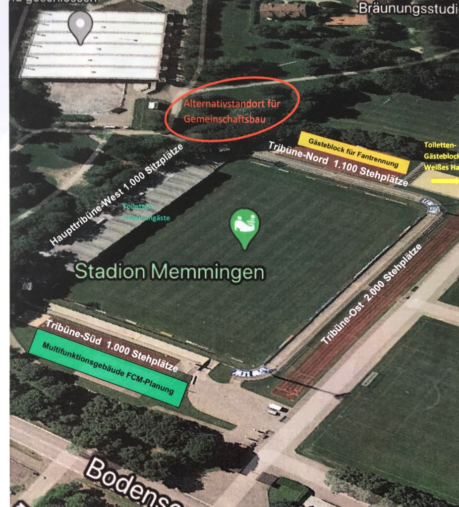 Wenn man sich die Pläne anschaut, wird der geringste Teil (rosa) dem FC Memmingen zugeordnet, der weitaus größte Teil der Stadt.