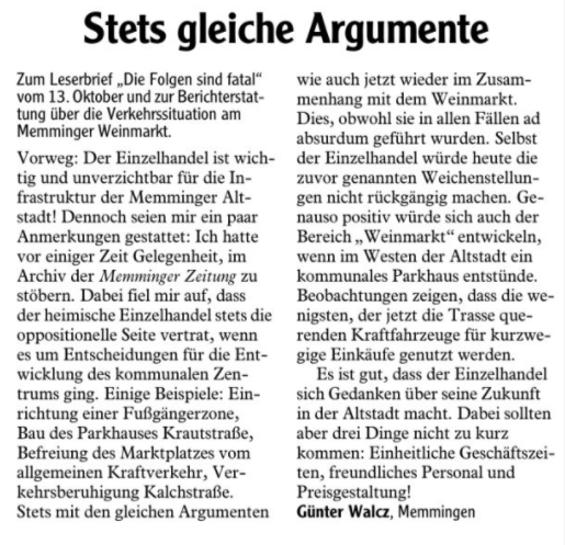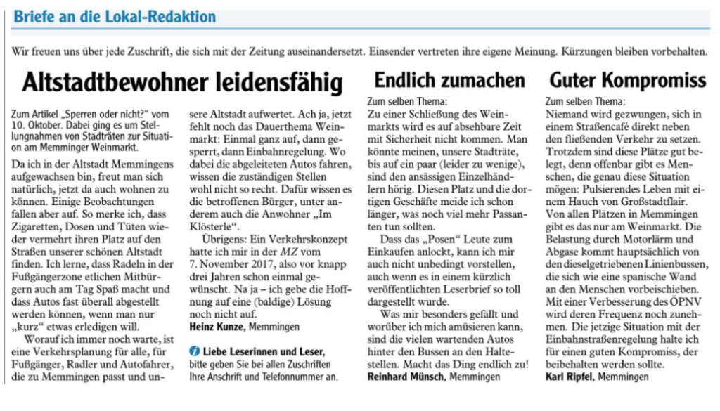 6. Leserbriefe in der MMZ zum Verkehr in der Altstadt
