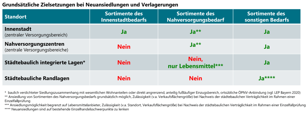 - in den Nahversorgungs-Zentren dürfen keine Sortimente des Innenstadtbereichs angesiedelt werden