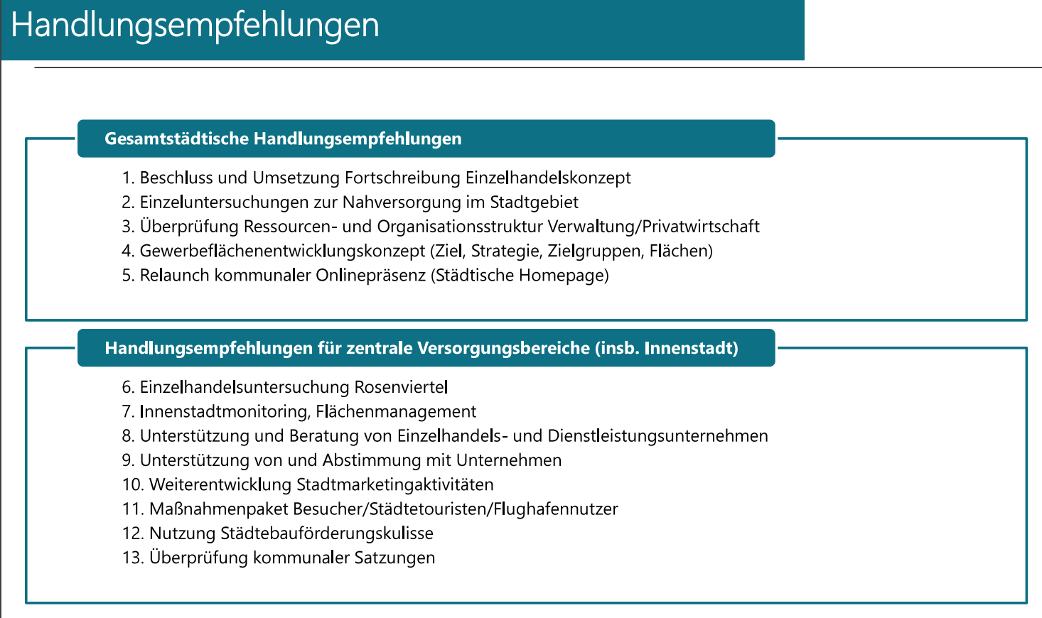 Die Empfehlung war auch noch, den Einzelhandelsplan ca. alle 5 Jahre neu zu erstellen. Unser Vorschlag — siehe ganz unten!