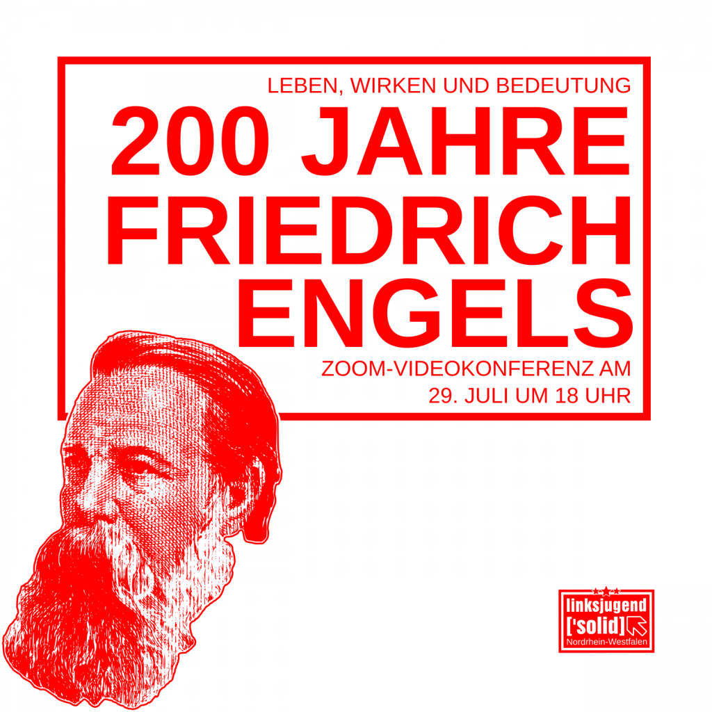 Am 28.11.1820. wurde Friedrich Engel in Wuppertal geboren. Schon früh zog es ihn zu Literatur und Philosophie. Sein Vater, ein erfolgreicher Unternehmer, wollte dass er ins elterliche Unternehmen einsteigt. So nahm er ihn ein Jahr vor dem Abitur – Engels war ein exzellenter Schüler – vom Gymnasium, um in in eine Lehre zu schicken. So wurde er auch nach England in eine Niederlassung der Firma geschickt. Hier kam er zum ersten mal mit der Not und dem Elend der Arbeiter*innen in Kontakt.