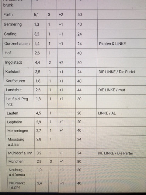 Unser Einsatz wurde belohnt. Mit einem Sitz zog die Linke in den Stadtrat in Memmingen ein. Dies gelang der Linken nicht nur in Memmingen, sondern auch in Kaufbeuren, in Lindau und in vielen anderen Städten und Landkreisen. Insgesamt konnten die Linken die Sitze in Bayern vervierfachen – und das wird noch nicht das Ende sein.