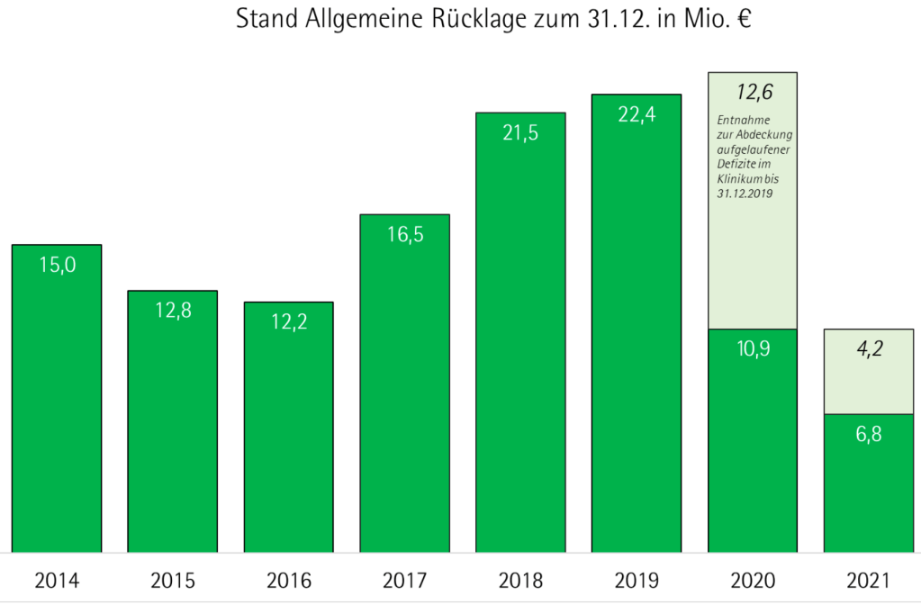 Für 2021 werden 4,2 Mill. dem Haushalt zugeführt. Damit werden die 2021 wieder fälligen 5,0 Mill. zur Schuldentilgung des Klinikums in etwa ausgeglichen.