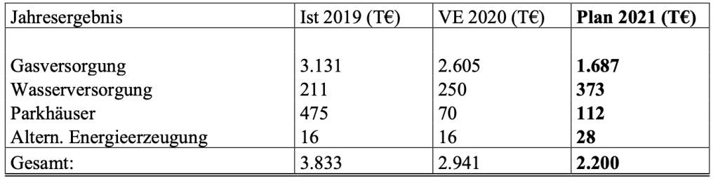 TOP 3 – Stadtwerke Wirtschaftsplan 2021