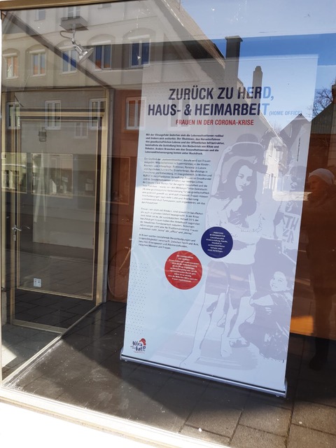 Das neu gestaltete Roll-Up ZURÜCK ZU HERD, HAUS- & HEIMARBEIT (HOME OFFICE) FRAUEN IN DER CORONA-KRISE wird erstmals in Memmingen gezeigt!