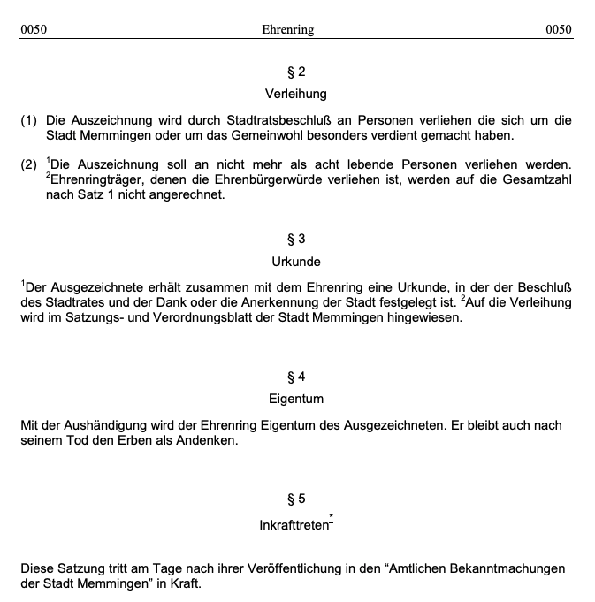 Der Ehrenring wird höchstens an acht lebende Personen verliehen.