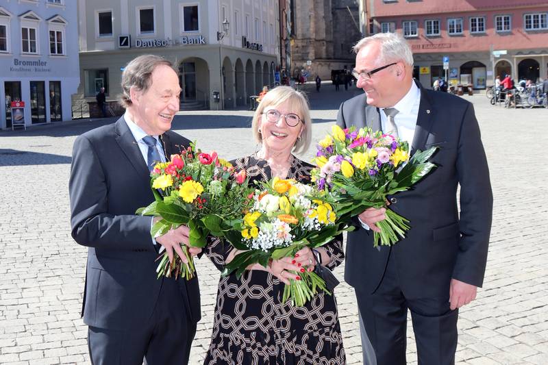 Jetzt bekam sie die höchste Auszeichnung der Stadt Memmingen als erste Frau. Bei Anwesenheit vieler Ehrenringträger (z.B. Dr. Ivo Holzinger, Herbert Müller, Josef Miller…) hielt OB Schilder die Laudatio.