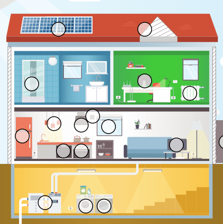 - Licht: 13 %: nach und nach auf LED Lampen umrüsten und Licht nur anmachen wenn benötigt