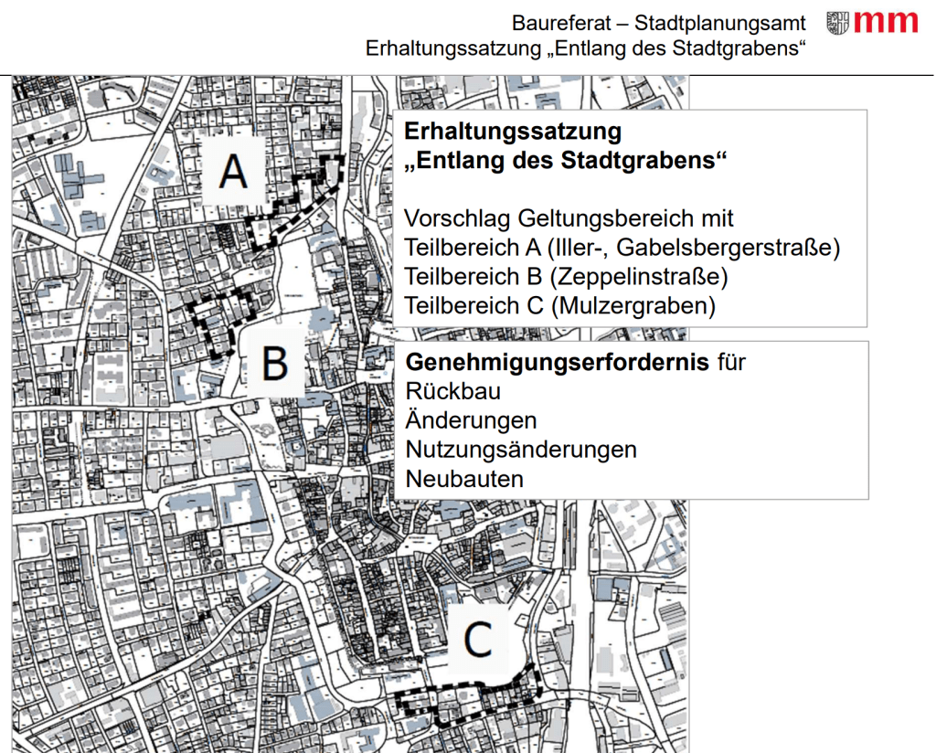 Der Gestaltungsbeirat (gibt) der Stadt Memmingen die Empfehlung, geeignete planungsrechtliche Instrumente zu prüfen, um den Charakter des Gesamtquartiers bestmöglich zu erhalten und damit dem schleichenden Verlust an Identität entgegenzuwirken.“ Es geht um die erste Stadterweiterung außerhalb der Stadtbefestigung.