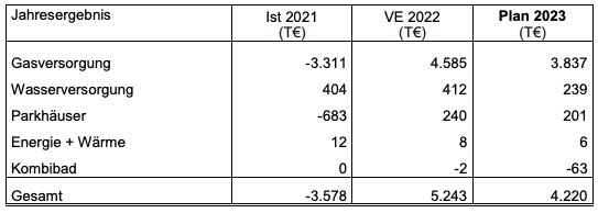 Bei den Stadtwerken geht es im wesentlichen (neben der „Abwicklung“ Gas als Kernsparte) um das neue Kombibad, das unter dem Dach der Stadtwerke realisiert werden soll, Dafür sind – Stand heute – 39 Mil. nötig: 9 Mil. kommen von der Stadt, 18 Mil. sind Darlehen (Schulden), 9 Mil. sind Eigenmittel der Stadtwerke und 3 Mil. wird es Fördergelder geben.