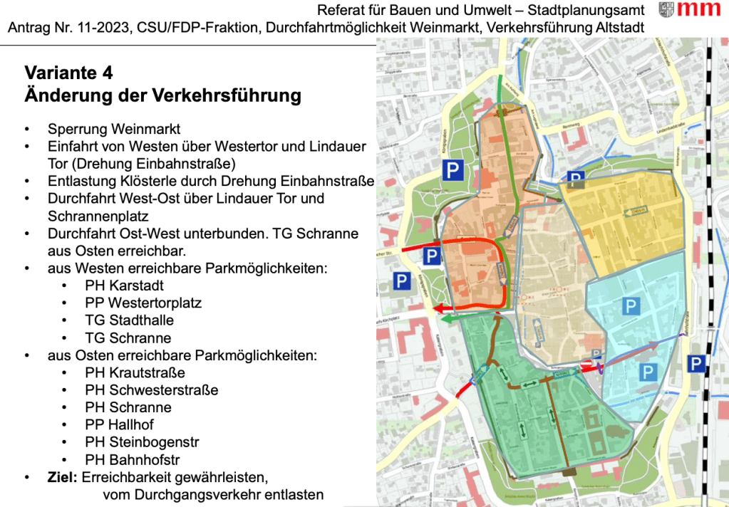 Der CSU/FDP Antrag umfasste auch die Ablehnung des Konzepts der Verkehrsberuhigung Schrannenplatz. Er wurde abgelehnt und im Gegenzug dann die geänderte Verkehrsführung beschlossen – siehe Plan und Erläuterung oben.