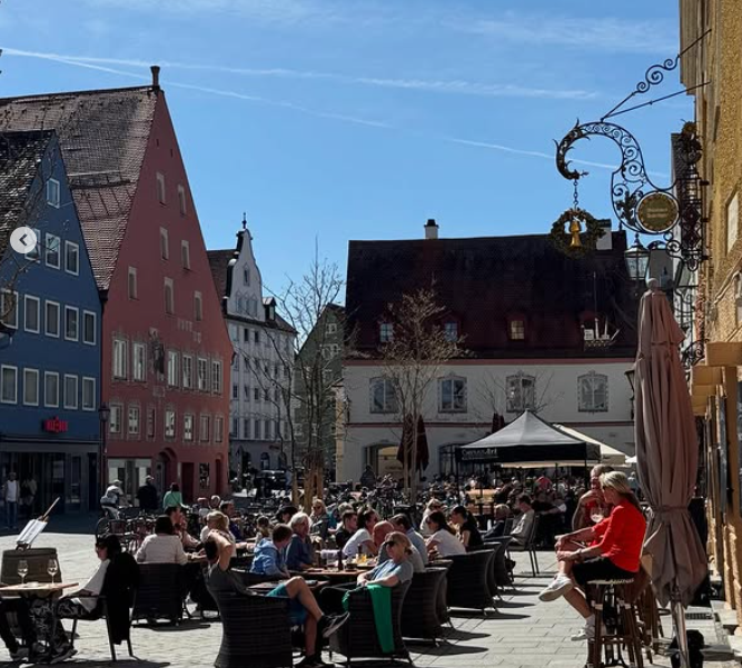 Ist das nicht schön, wie das angenommen wird. Der Weinmarkt strahlt jetzt nach so kurzer Zeit eine Ruhe und Behaglichkeit aus, mit Konsummöglickeiten und konsumfreien Sitzmöglichkeiten. Es lohnt sich, vorbei zu schauen und dort zu verweilen. Es wird bald – bis auf die Hardcore-Autofahrer – niemand mehr die Autos vermissen. Und es ist noch nicht mal Sommer, wenn dann die Bäume grün sind, wird es noch viel schöner. (Bild und weitere schöne Bilder: Stadt Memmingen. Es ist jetzt neben dem Theaterplatz und dem Marktplatz der dritte schöne Platz in Memmingen, um sich zu treffen, zu verweilen, Sonne und Essen/Getränke zu geniessen. Mit dem Unterschied: der Weinmarkt ist und wird mit den Bäumen eine grüne Oase in der Stadt. Die wird immer wichtiger. Wir werden es dieses Jahr im Sommer bereits merken: „Neueste Prognosen zeigen Hitzesommer in Deutschland – Die neuen Wettervorhersagen für den Sommer 2025 sind da und der erste Trend bestätigt sich: Es wird sehr heiß im Juli und August.“