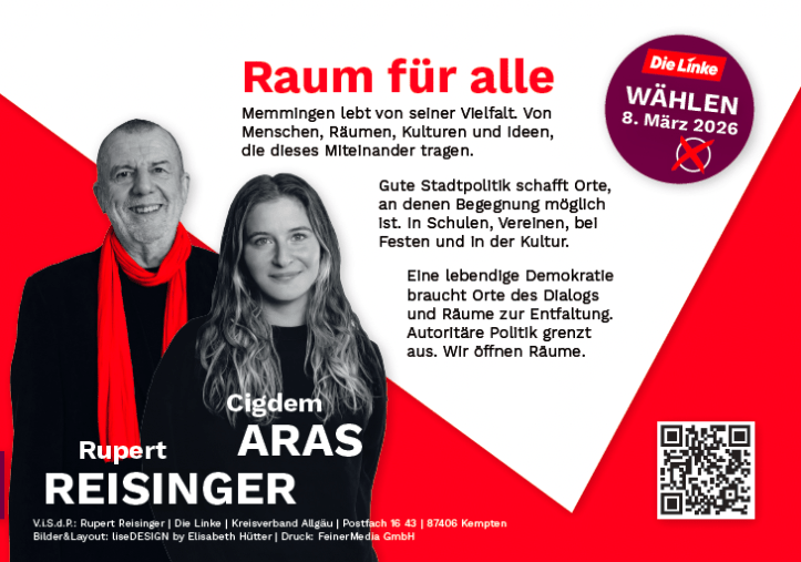 Wir. DIE LINKE, starten den Wahl-Wettbewerb. Als erstes stellen wir unseren Flyer vor. In den nächsten Tagen wird unsere Broschüre „Unser Angebot“ folgen und dann die Plakate für Memmingen.