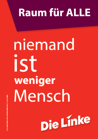 Wir werden die „Philosophie“ unseres Wahlkampfes im nächsten Beitrag genauer beleuchten. Die Plakate, der Flyer, die Wahlbroschüre bilden eine Einheit. Es sind grundsätzliche Gedanken dahinter. Das übergeordnete Motto: RAUM FÜR ALLE – NIEMAND IST WENIGER MENSCH. Dieses Motto wird auf einem Plakat direkt abgebildet.