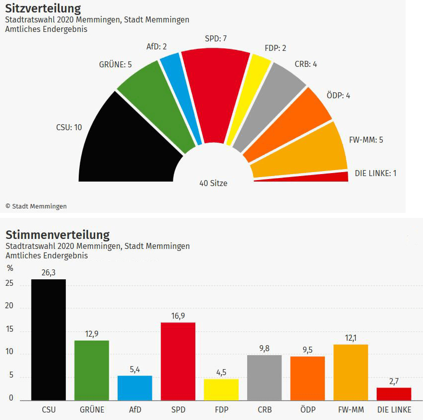 Bisherige Sitzverteilung im Memminger Stadtrat nach der Wahl 2020