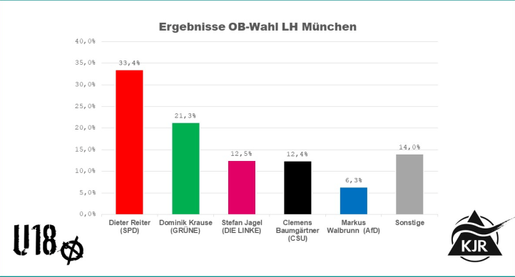 Ich weiss: wir sind nicht in München, aber ein Vergleich ist immer interessant. Hier die Ergebnisse der Kreisjugendring – Wahl der unter 18 Jährigen zut OB-Wahl. In Memmingen ist keine OB-Wahl und die Stadtratswahl wird definitiv nicht so ausfallen – obwohl es nicht so ganz schlecht wäre.