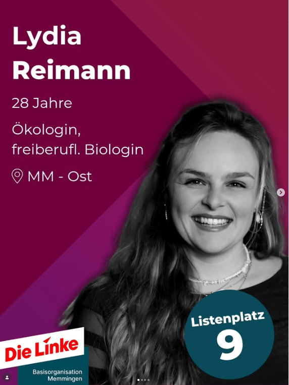 | 9 | Lydia Reimann | 28 Jahre | Ökologin, freiberufliche Biologin |