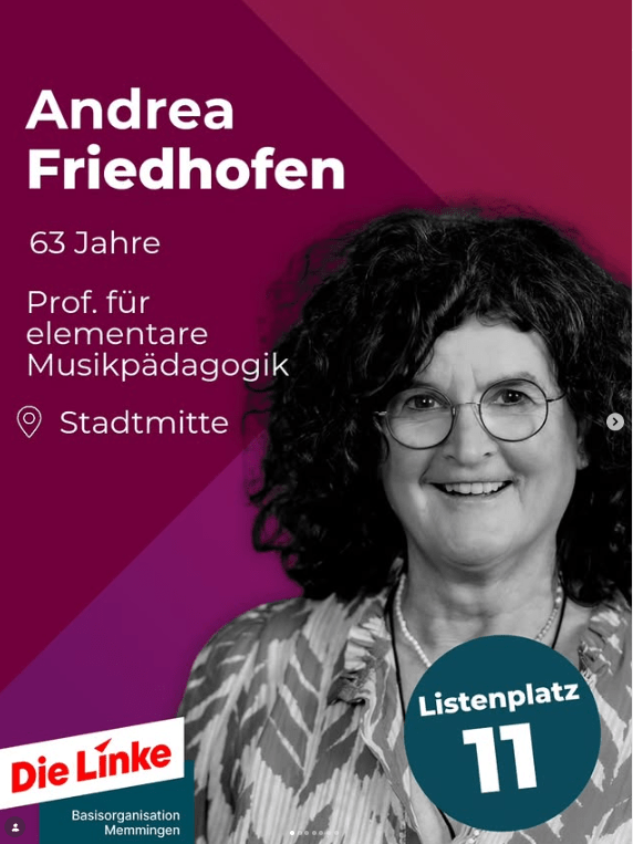 | 11 | Andrea Friedhofen | 63 Jahre | Professorin für elementare Musikpädagogik |