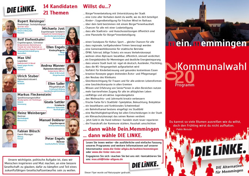 Hier findet Ihr die Werbematerialien von die Linke Memmingen. Ihr könnt sie herunterladen und in euren sozialen Netzwerken verbreitern!