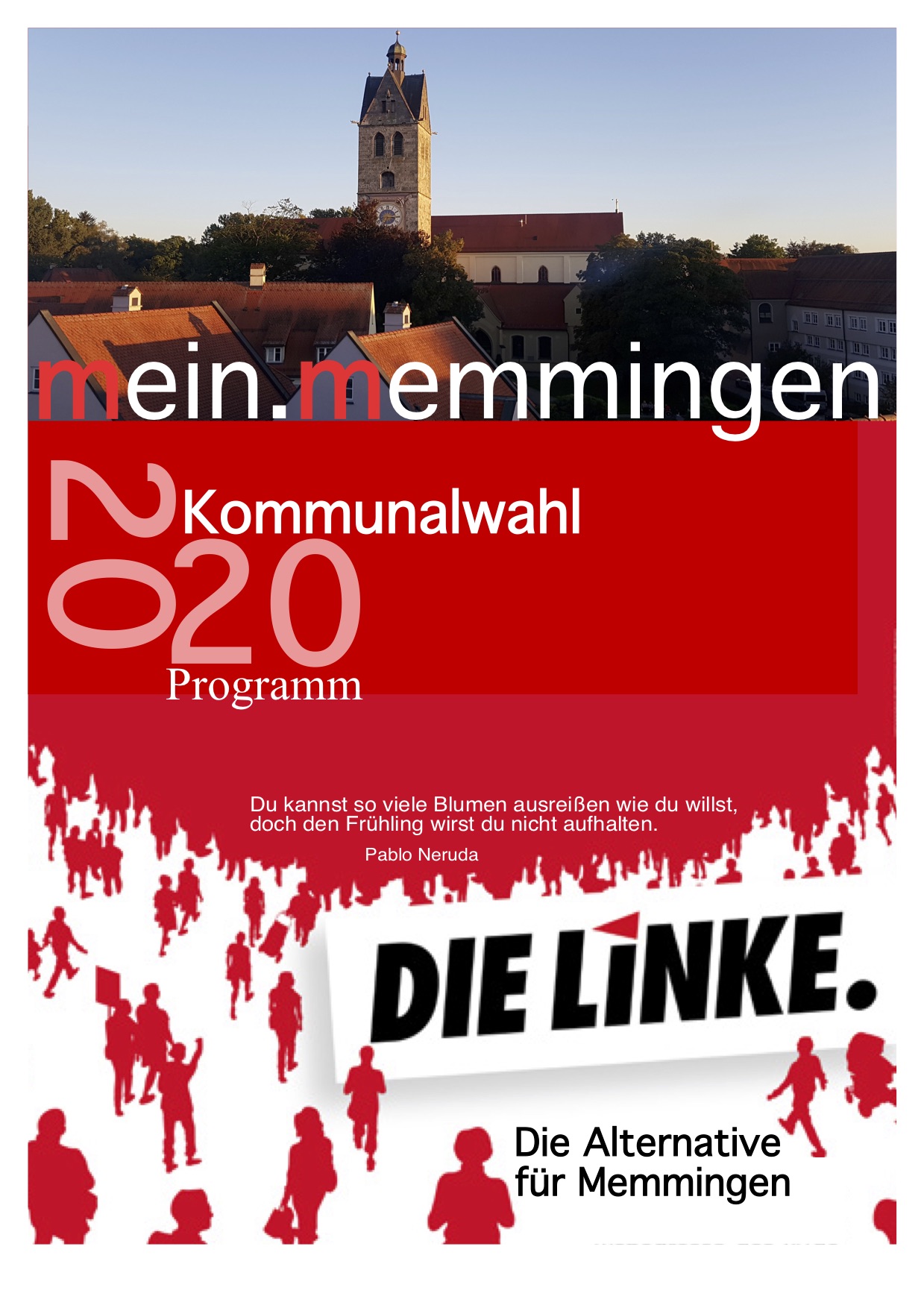 Unser Wahlprogramm des Kommunalwahlkampfes 2020 wird unsere Handlungsanleitung für die nächsten sechs Jahre sein. Lest es aufmerksam durch und erinnert uns an unser Programm, sollten wir es vergessen.
